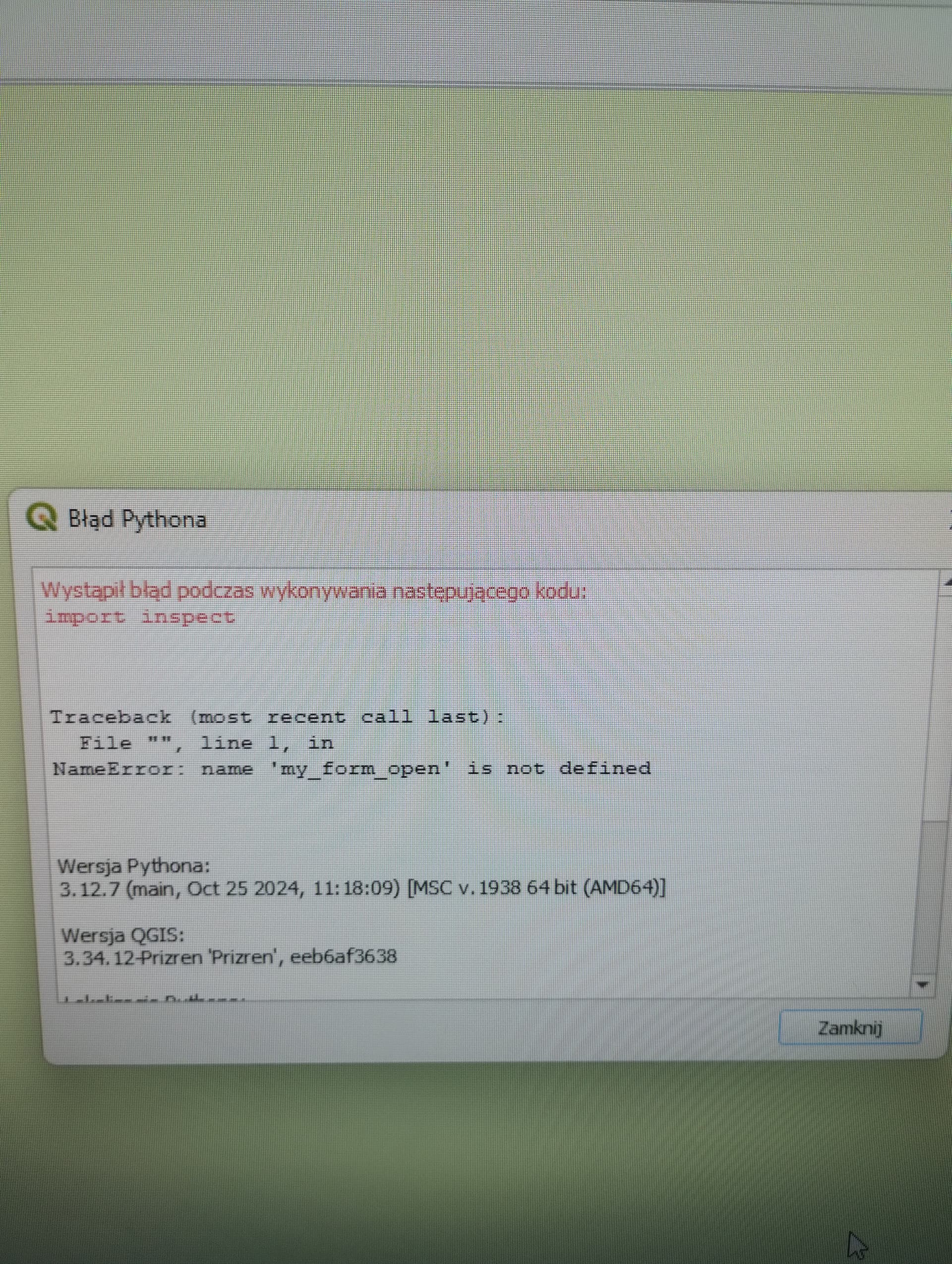 Taki mam błąd gdy chcę edytować na innym komputerze warstwę strefa planistyczna.