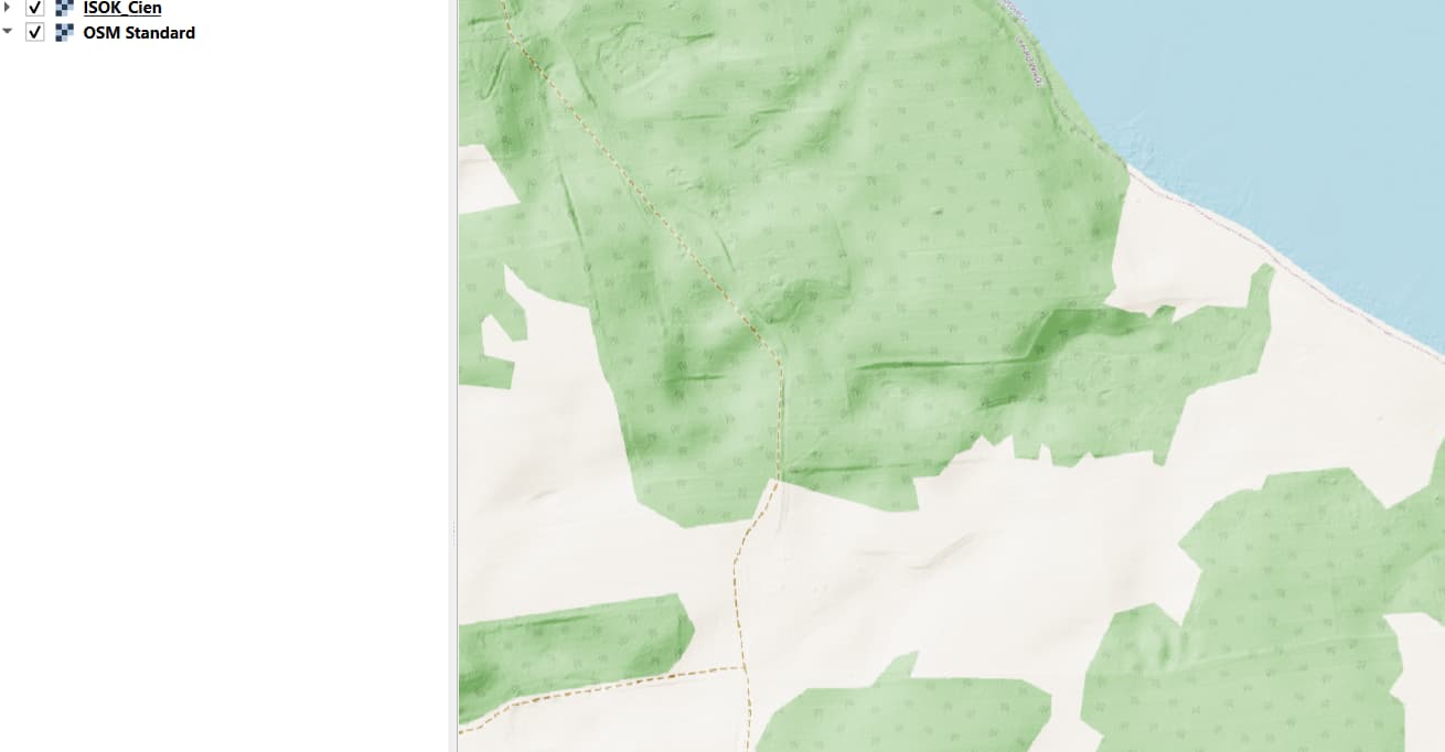 - cieniowanie ustawiasz jako górną warstwę, a mapę bazową (georeferencjonowaną) pod spodem.