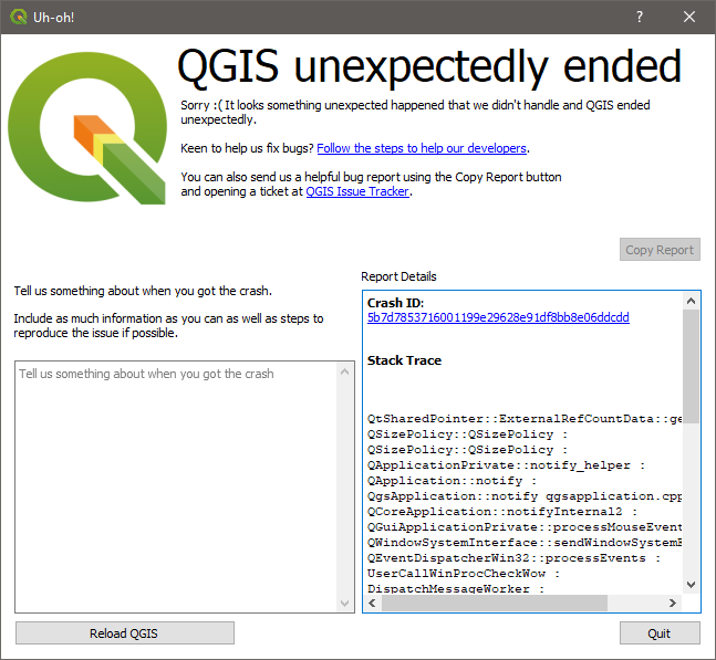 Podpunkt 6a - Stos pokazuje render w QGraphicsScene (układ wydruku). Jeden „toksyczny” element (np. wadliwy SVG, problematyczna czcionka, legenda filtrowana po atlasie) potrafi ubić Qt bez komunikatu. Podobne crashe są raportowane przy eksporcie układów. (GitHub)