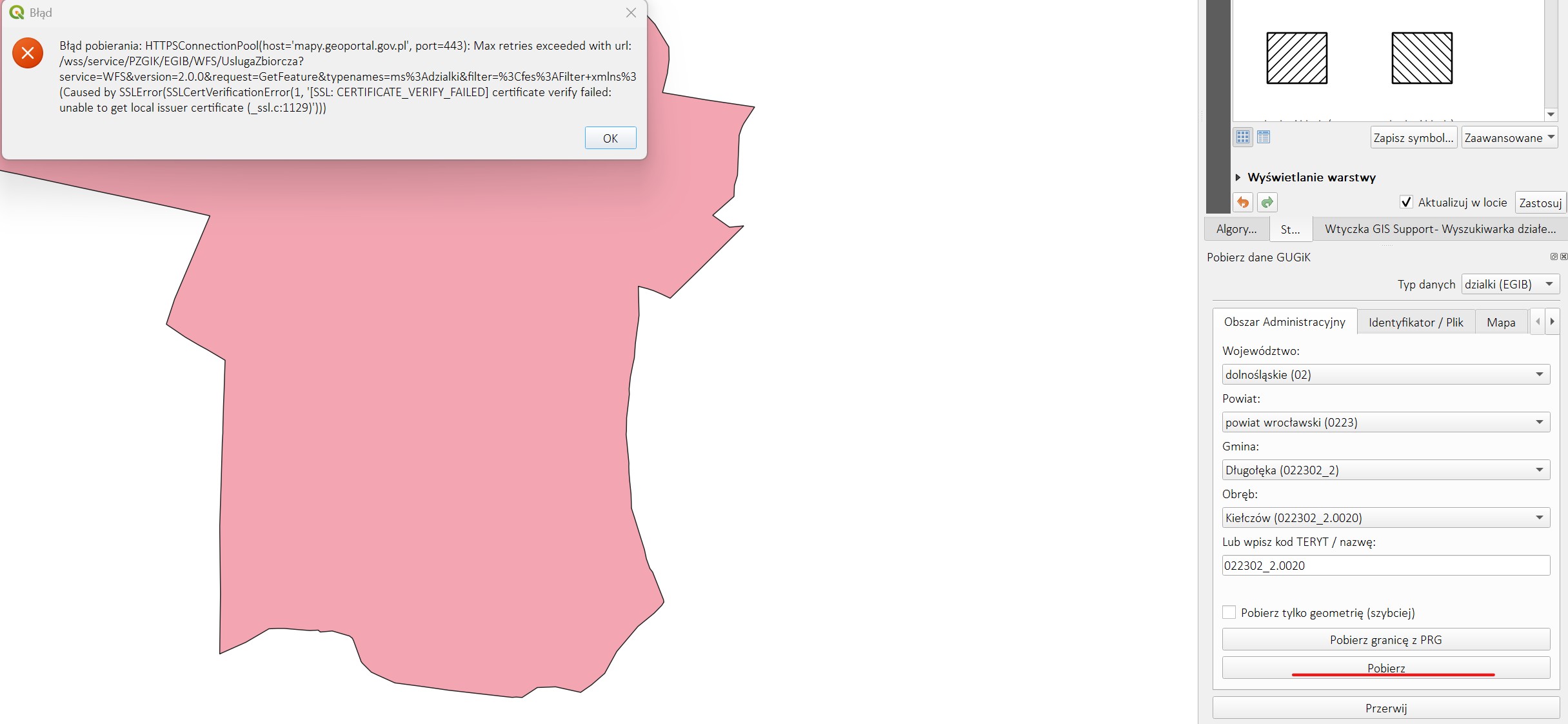 No póki co, to pobieranie poligonem działa lepiej u ekipy GIS SUPPORT. Pobiera się ładnie dla tasiemcowatych poligonów, a GUGiKowa kręci długo i albo nic, albo error