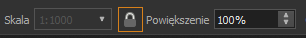 Chodzi mi o ten panel, możesz ustawić skale 1:1000, kliknąć kłódkę i zablokować. Potem np. scrollem w myszce zmieniać powiększenie, skala będzie zawsze 1:1000, ale ja w projekcie nie mam problemów z przeznaczeniem terenów, sprawdź szerokość linii czy nie masz w punktach.