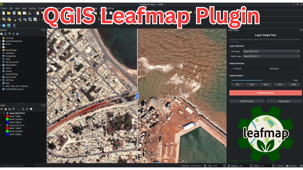 Jak Archiwalna Ortofotomapa to i Map swipe tool nie może zabraknąć → prosta w obsłudze wtyczka, pozwala porównać archiwalną ortofotomapę z inną wgraną warstwą